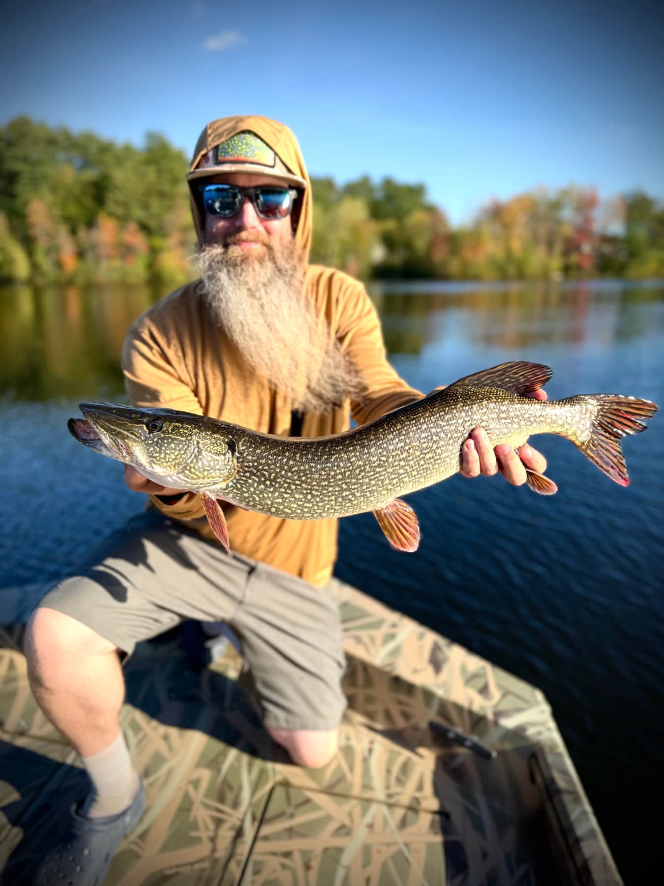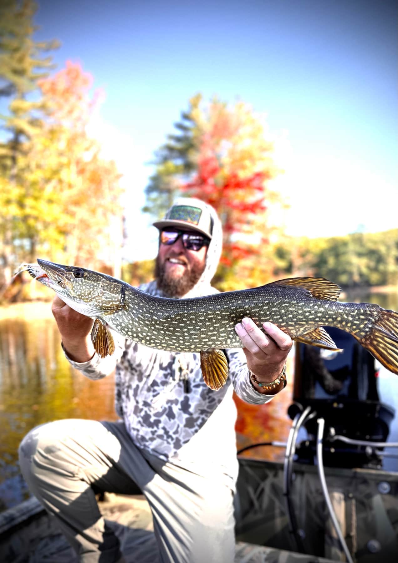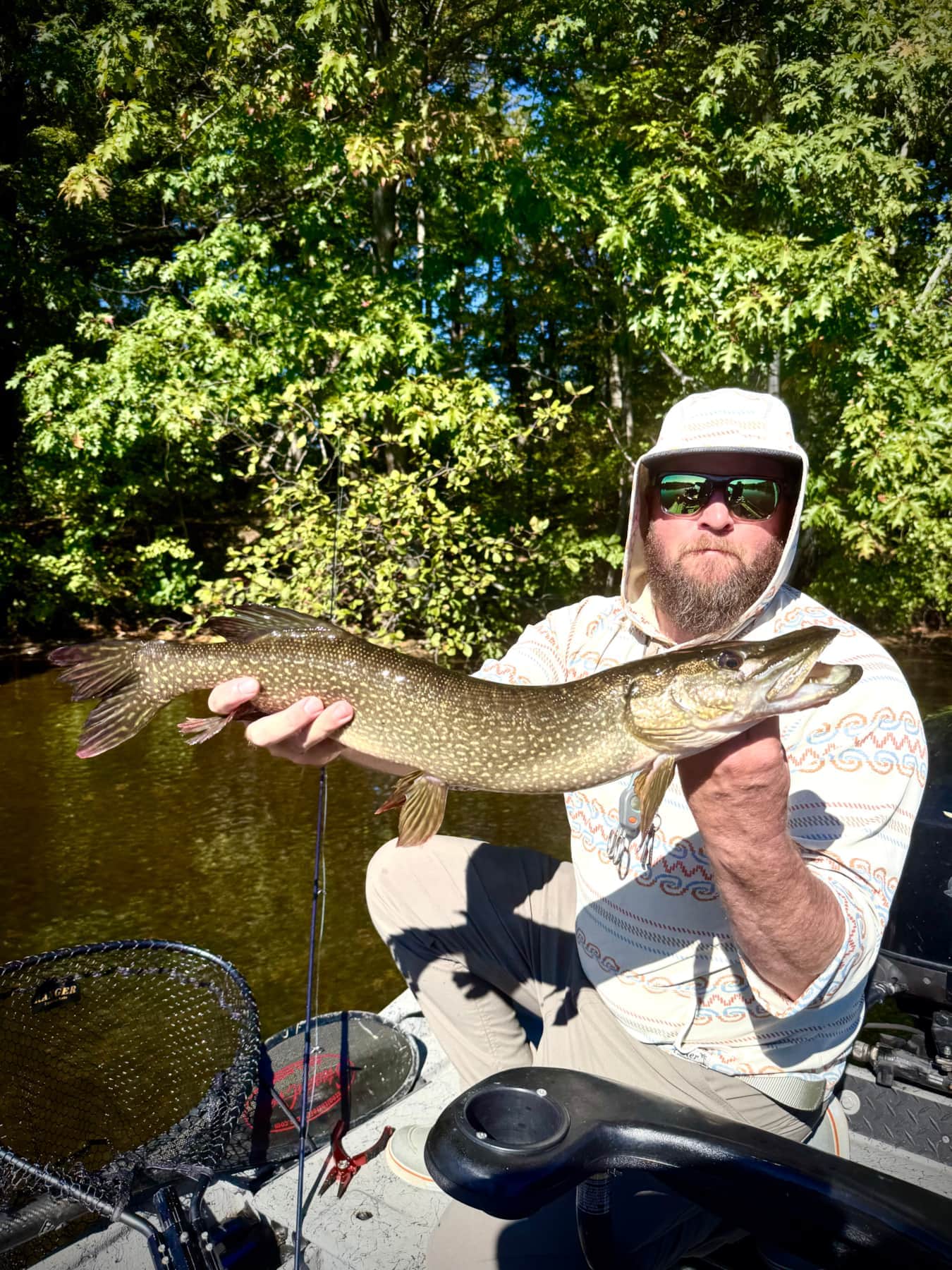 We target pike using 8-11 weight rods. Flies vary from easy to cast 5” flies to large 10” flies. We access the many river locations we guide with our Crestliner Retreiver 1660 FCC Jet Boat! This allows for flexibility where we fish, when we fish, when we get off the water, no need for a shuttle, and is a great platform to cast and see these large beast follow or ambush your fly!